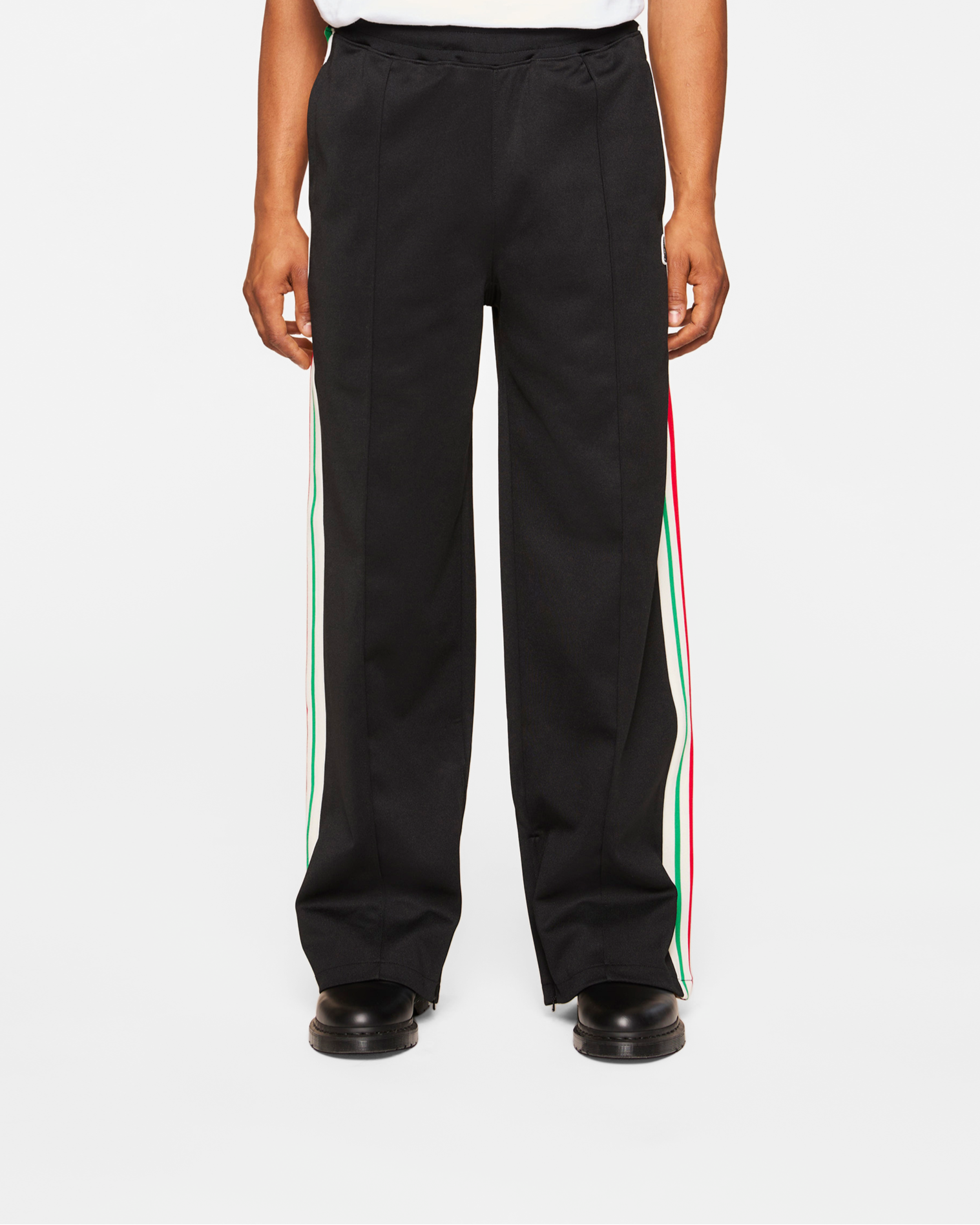 The Bass Track Pants feature stripes along the sides and a Helmet head woven label.