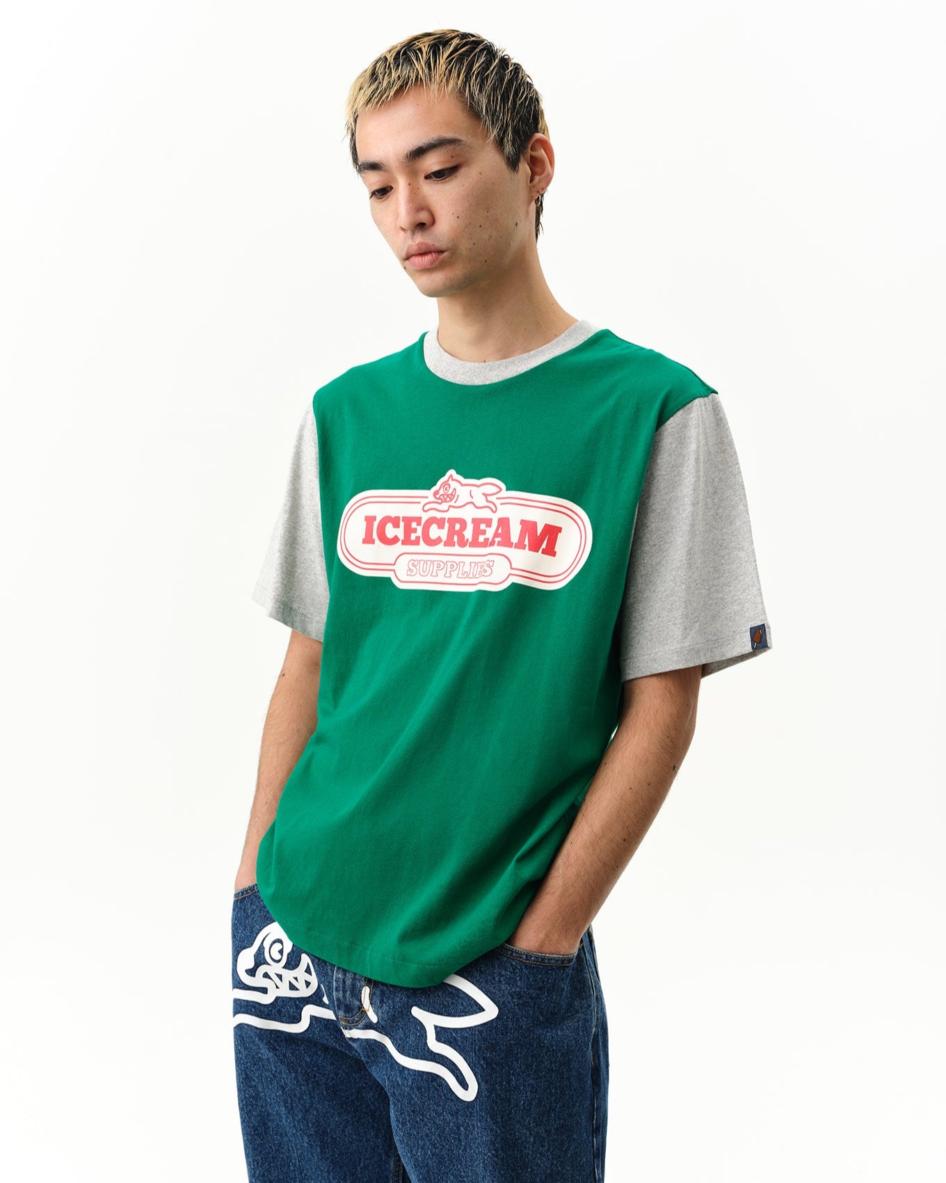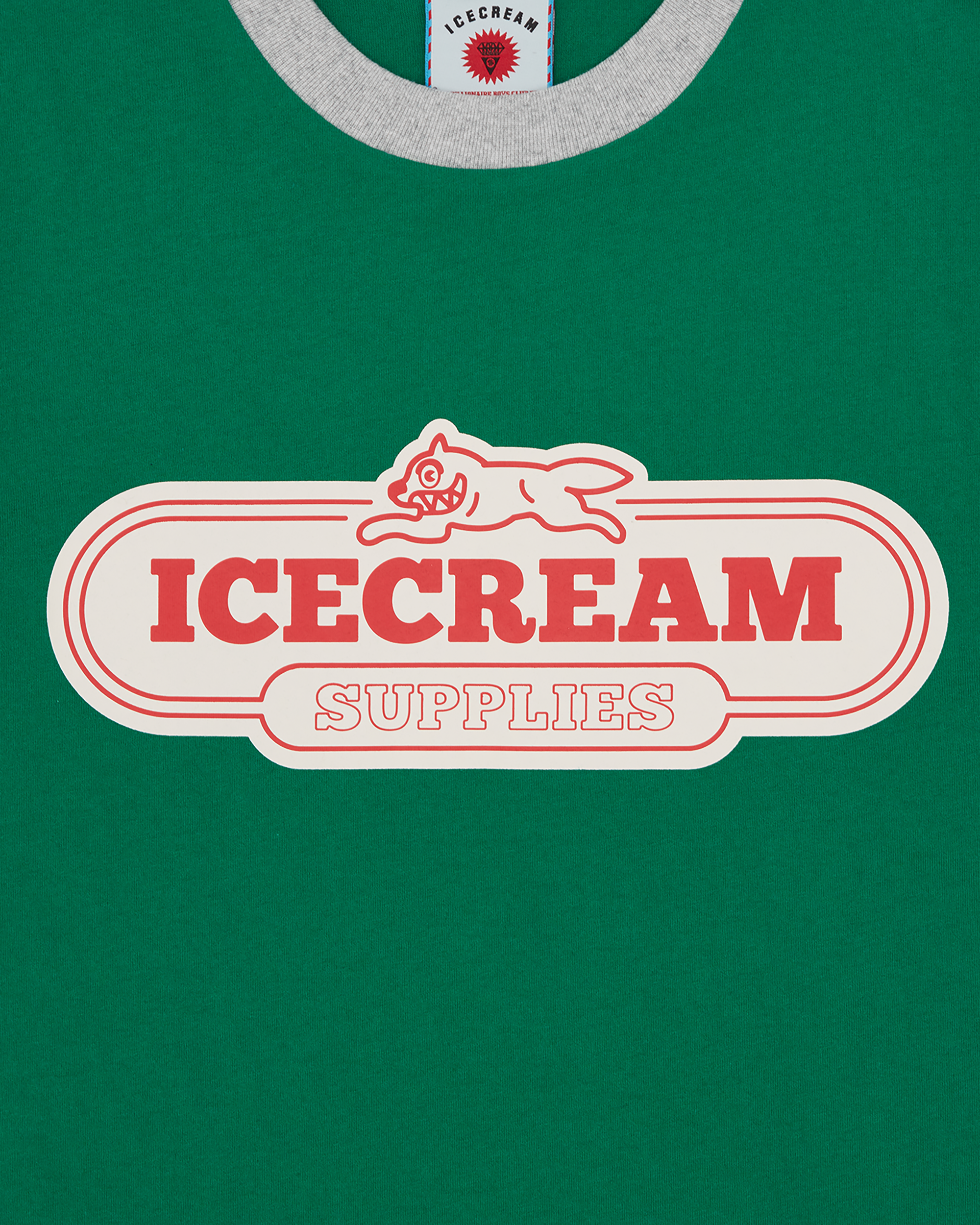 - Screen printed ICECREAM graphic at chest