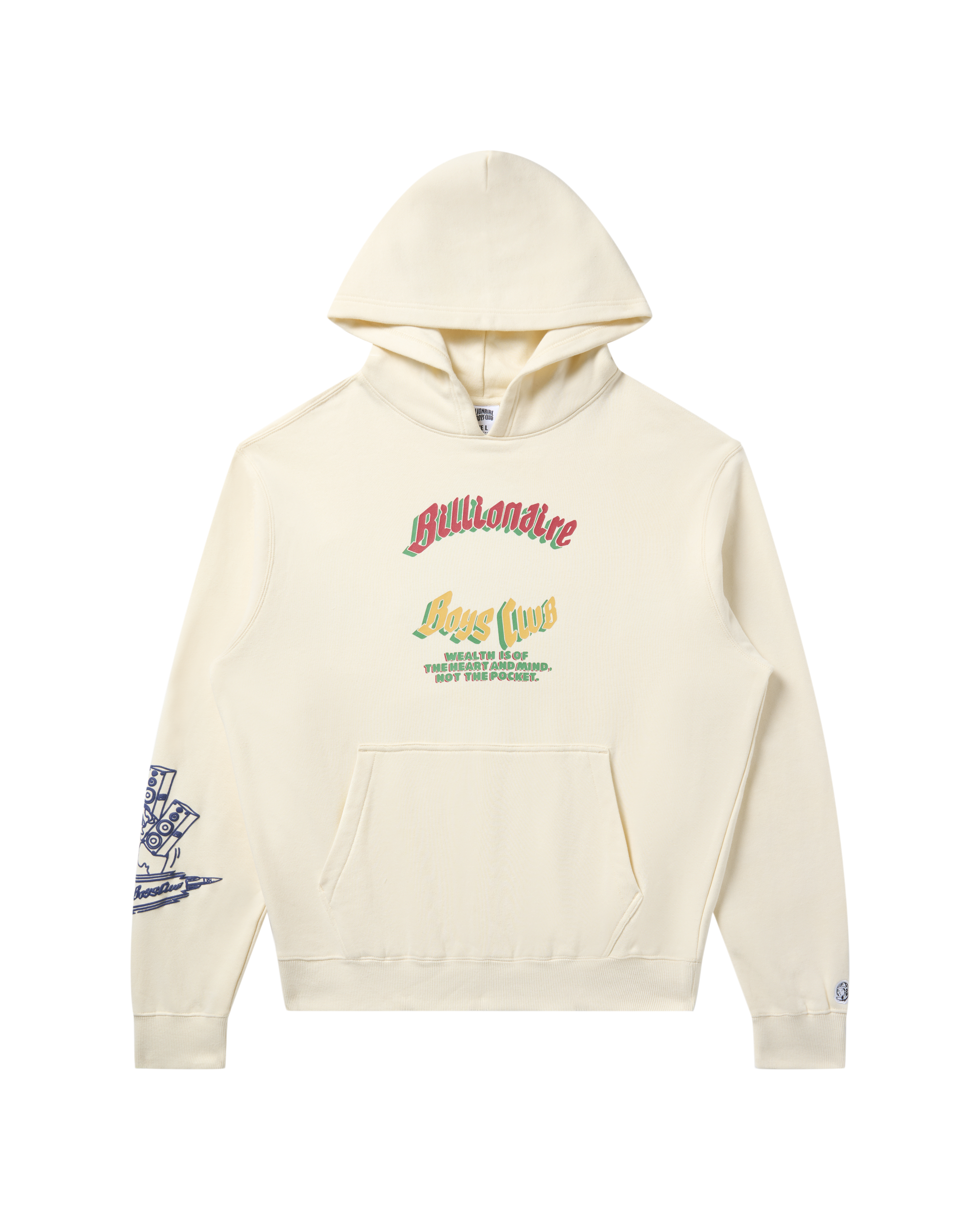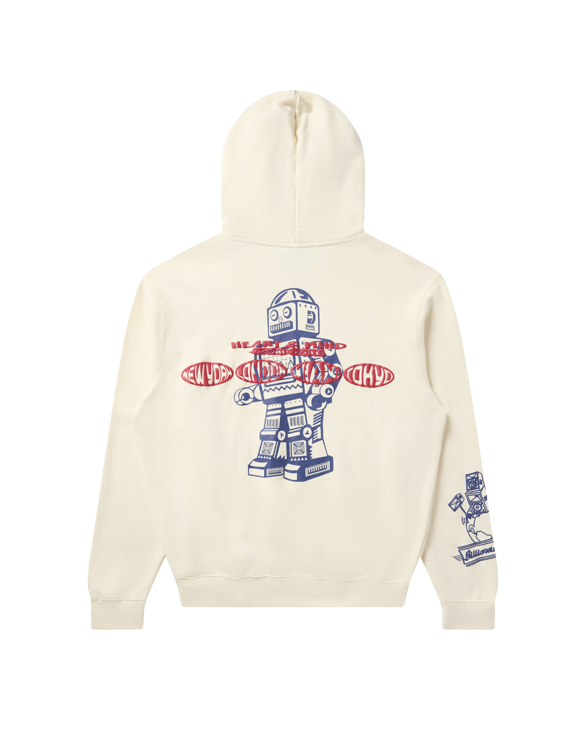The Motion Hoodie displays a Billionaire Boys Club logo on both the front and sleeve. with a Robot design printed on the back.